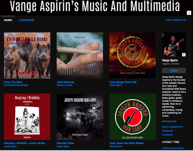 You can find everything about my work as a music producer, musician, and sound engineer at this link: https://vanja-spirin.bandcamp.com/ or by clicking on the image below. I compose and produce various music genres, from ambient and film scores to jazz, blues, and metal. Click and choose an album on my Bandcamp page.